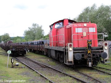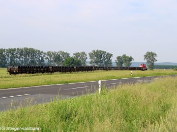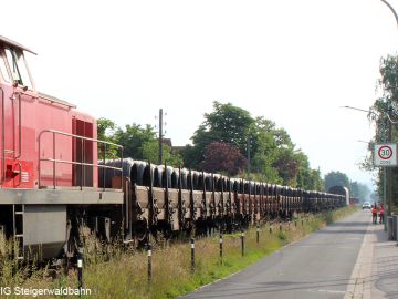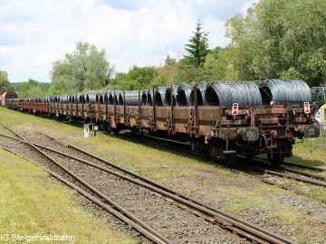 DB Cargo hat am Samstag, den 12. Juni 2021 probehalber die Zustellung von 16 mit Stahlrollen beladenen Waggons mit nur einer Lok getestet. Eventuell kann so die Auslastung der täglichen Übergabe verbessert werden.
