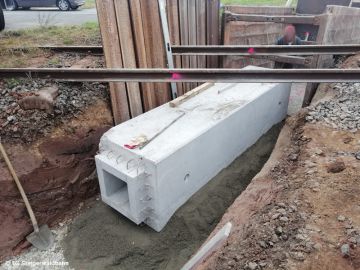 Die größte Herausforderung war allerdings die Erneuerung von zwei Durchlässen. Da hierzu sowohl Schwellen als auch Unterbau ausgebaut werden mussten, konnte kein Zug verkehren. Die Bauarbeiten wurden pünktlich abgeschlossen, so dass der Zugverkehr am Montag wieder aufgenommen werden konnte.