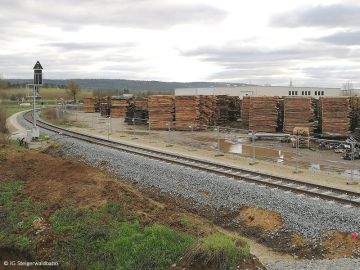 Im Rahmen einer notwendig gewordenen Schwellenauswechselung wurden die morschen Holzschwellen nun erstmals gegen Kunstoffschwellen ersetzt.