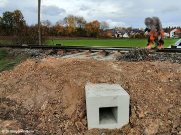 Die größte Herausforderung war allerdings die Erneuerung von zwei Durchlässen. Da hierzu sowohl Schwellen als auch Unterbau ausgebaut werden mussten, konnte kein Zug verkehren. Die Bauarbeiten wurden pünktlich abgeschlossen, so dass der Zugverkehr am Montag wieder aufgenommen werden konnte.